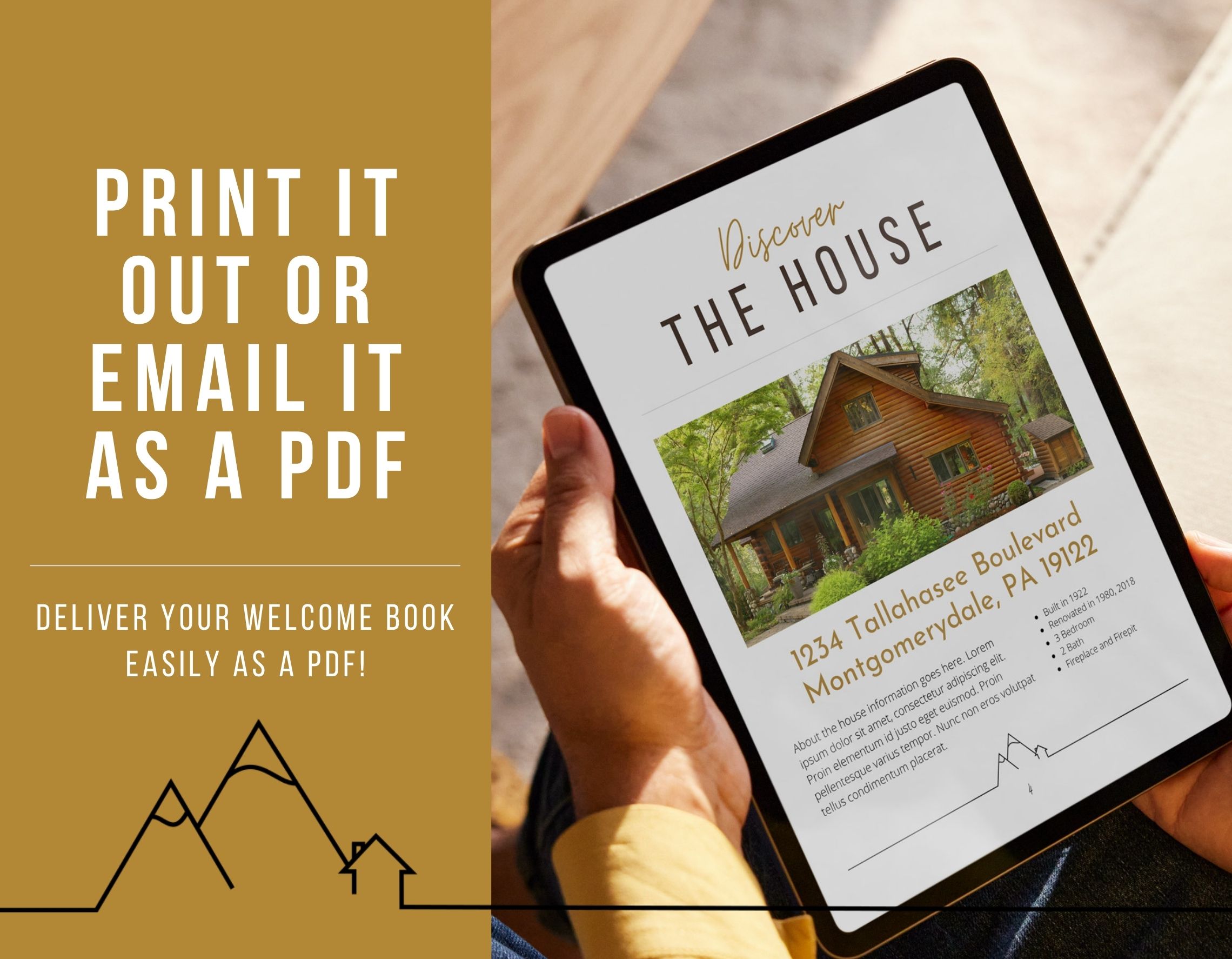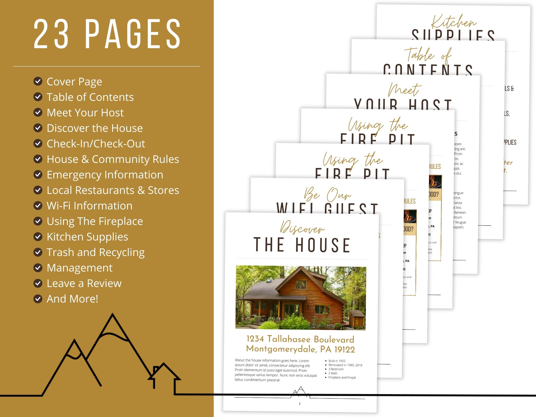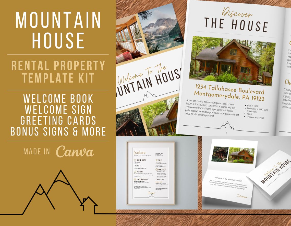 Welcome Book for Airbnb and VRBO Rentals. Mountain House Welcome Book for your guests and visitors. Customizable Airbnb House Manual Canva template. You can change the colors, images, fonts, text, and more. Customize to fit the style of your Mountain House Airbnb property! The Canva template is accessible via a link once purchased. It works on the Canva website app, mobile app and desktop app.